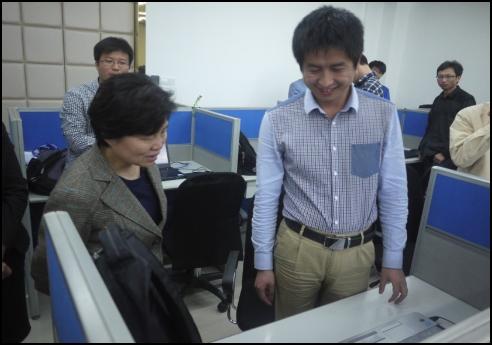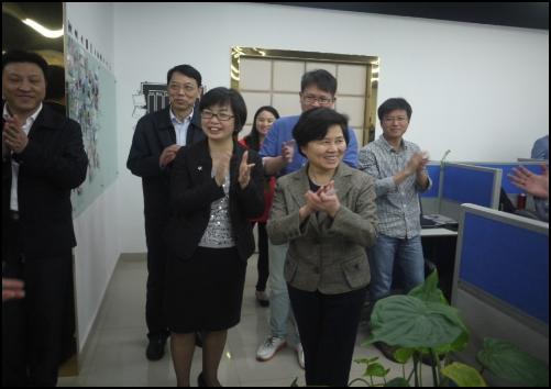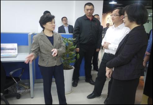 我司总裁特别助理曹祯向各位领导介绍了新东网的发展历程、经营业绩、业务体系等,陈桦书记充分肯定了我司各方面取得的成绩。陈桦书记参观了公司创新中心的办公环境,并亲切慰问工作中的研发人员,对于公司长期为有想法的大学生们助资、提供项目外包等方式扶持大学生们创业的做法,她表示十分赞赏:“刚毕业的大学生,充满朝气和拼搏劲儿,团结捆绑在一起,共同奋斗为生活,前途一片光明。”