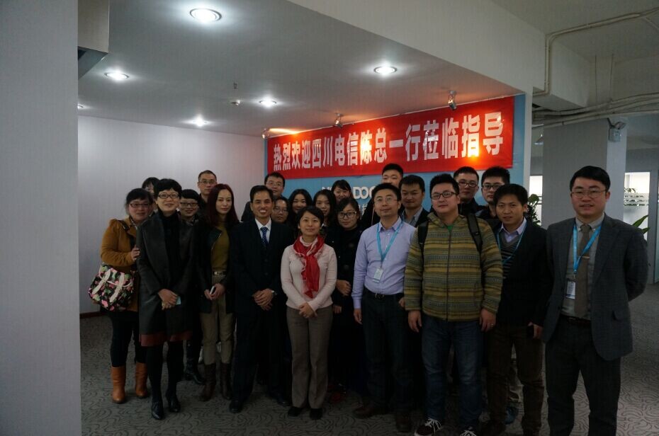 12月4日,四川电信客服中心总经理陈琳莅临我司四川分公司参观指导。我司高级副总裁詹桂堡、四川分公司总经理周捷出席了接待活动。在考察中,陈琳总经理与我司领导亲切交谈,详细询问了近期分公司的经营情况与自主研发产品的市场反响,言语中透露出对我司发展的殷殷关切之情。